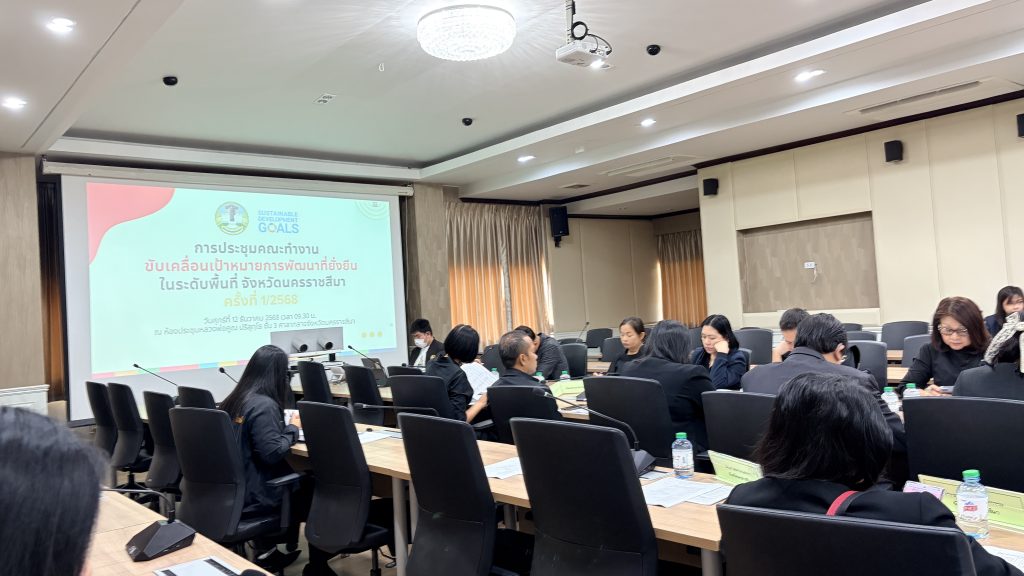 วันศุกร์ที่ 12 ธันวาคม 2568 รศ.ดร.ศักดิ์ระวี ระวีกุล ผู้อำนวยการสถาบันวิจัยและพัฒนา มอบ ดร.ชยกฤต เพชรช่วย รองผู้อำนวยการฝ่ายบริหารงานทั่วไป เข้าร่วมการประชุมคณะทำงานขับเคลื่อน เป้าหมายการพัฒนาที่ยั่งยืน (SDGs : Sustainable Development Goals) ในระดับพื้นที่ จังหวัดนครราชสีมา การประชุมจัดขึ้น ณ ห้องประชุมหลวงพ่อคูณ ปริสุทโธ ชั้น 3 ศาลากลางจังหวัดนครราชสีมา โดยมีผู้แทนจากหน่วยงานภาครัฐ สถาบันการศึกษา และภาคส่วนที่เกี่ยวข้อง เข้าร่วมแลกเปลี่ยนข้อมูลและร่วมวางแผนแนวทางการพัฒนาเพื่อยกระดับคุณภาพชีวิตและความยั่งยืนของจังหวัดนครราชสีมาในระยะยาว