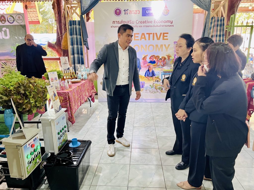 โดยมี ศ.ดร.ศุภชัย ปทุมนากุล ปลัดกระทรวง อว. พร้อมด้วยคณะ และนายอนุพงศ์ สุขสมนิตย์ ผู้ว่าราชการจังหวัดนครราชสีมา ให้เกียรติเข้าเยี่ยมชมผลงานวิจัยและนวัตกรรมจากกองทุน ววน. : การส่งเสริม Creative Economy ผ่านงานหัตถกรรมท้องถิ่น และการยกระดับสินค้าเกษตร