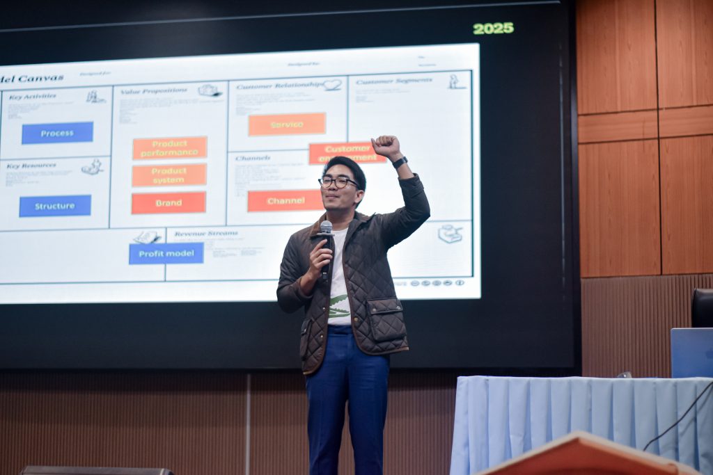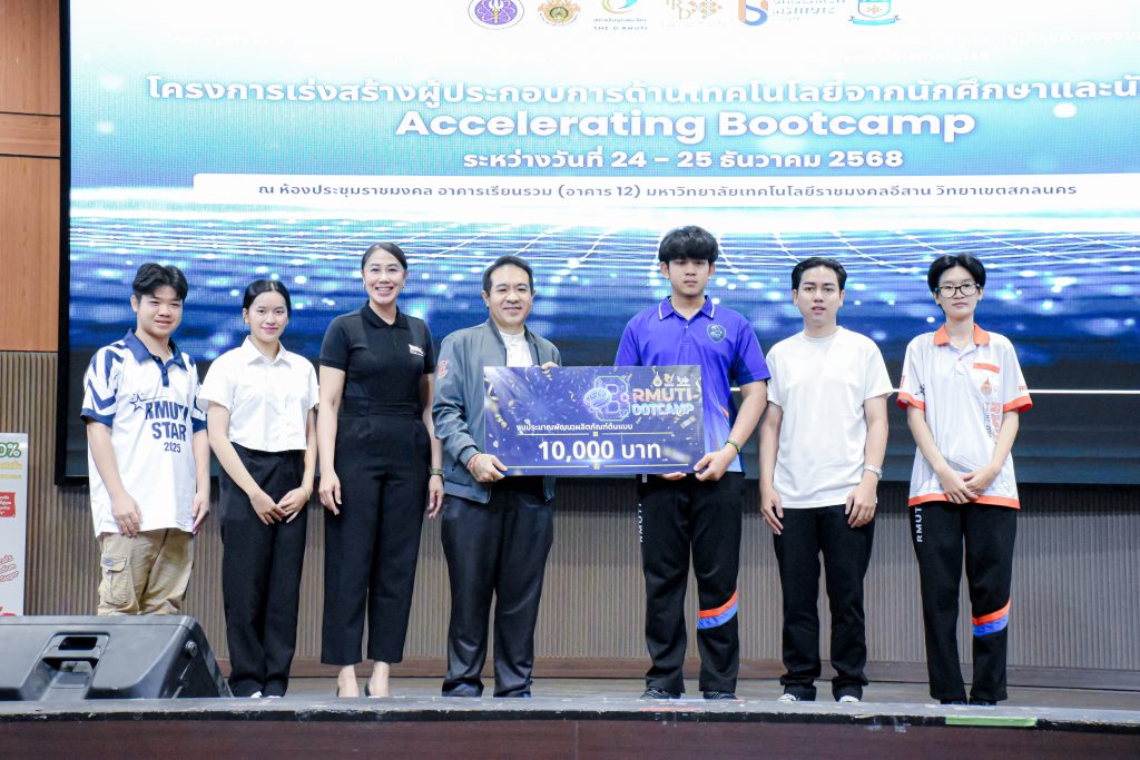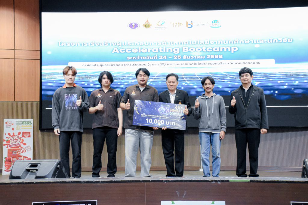 วันพฤหัสบดีที่ 25 ธันวาคม 2568 รศ.ดร.บัณฑิต กฤตาคม รองอธิการบดีฝ่ายวิจัย พัฒนานวัตกรรม และบริการวิชาการ เป็นประธานเปิดโครงการ พร้อมด้วย รศ.ดร.ศักดิ์ระวี ระวีกุล ผู้อำนวยการสถาบันวิจัยและพัฒนา คณะผู้บริหาร และบุคลากร จัดโครงการเร่งสร้างผู้ประกอบการด้านเทคโนโลยีจากนักศึกษาและนักวิจัย (Accelerating Bootcamp)