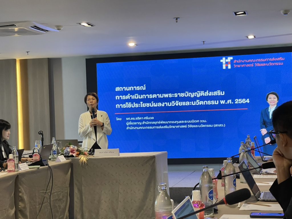 วันอังคารที่ 13 มกราคม 2569 รศ.ดร.ศักดิ์ระวี ระวีกุล ผู้อำนวยการสถาบันวิจัยและพัฒนา มอบ ผศ.จิรวัฒน์ จันทร์สว่าง รองผู้อำนวยการฝ่ายบริการวิชาการ พร้อมด้วย นางสาวกิติยาวดี เกตุนอก หัวหน้างานทรัพย์สินทางปัญญา เข้าร่วมประชุมสัมมนาแบบ Focus Group ในการดำเนินงานตามพระราชบัญญัติส่งเสริมการใช้ประโยชน์ผลงานวิจัยและนวัตกรรม พ.ศ. 2564 การประชุมดังกล่าวจัดขึ้นโดยมหาวิทยาลัยขอนแก่นร่วมกับสำนักงานคณะกรรมการส่งเสริมวิทยาศาสตร์ วิจัยและนวัตกรรม (สกสว.) ณ โรงแรมเบสท์ เวสเทิร์น จตุจักร กรุงเทพมหานคร โดยมีวัตถุประสงค์เพื่อแลกเปลี่ยนความคิดเห็น เสวนาถึงปัญหา อุปสรรค และแนวทางการดำเนินงานในการขับเคลื่อนการใช้ประโยชน์ผลงานวิจัยและนวัตกรรมให้เป็นไปตามพระราชบัญญัติฯ รวมถึงกฎหมายลำดับรองที่เกี่ยวข้อง