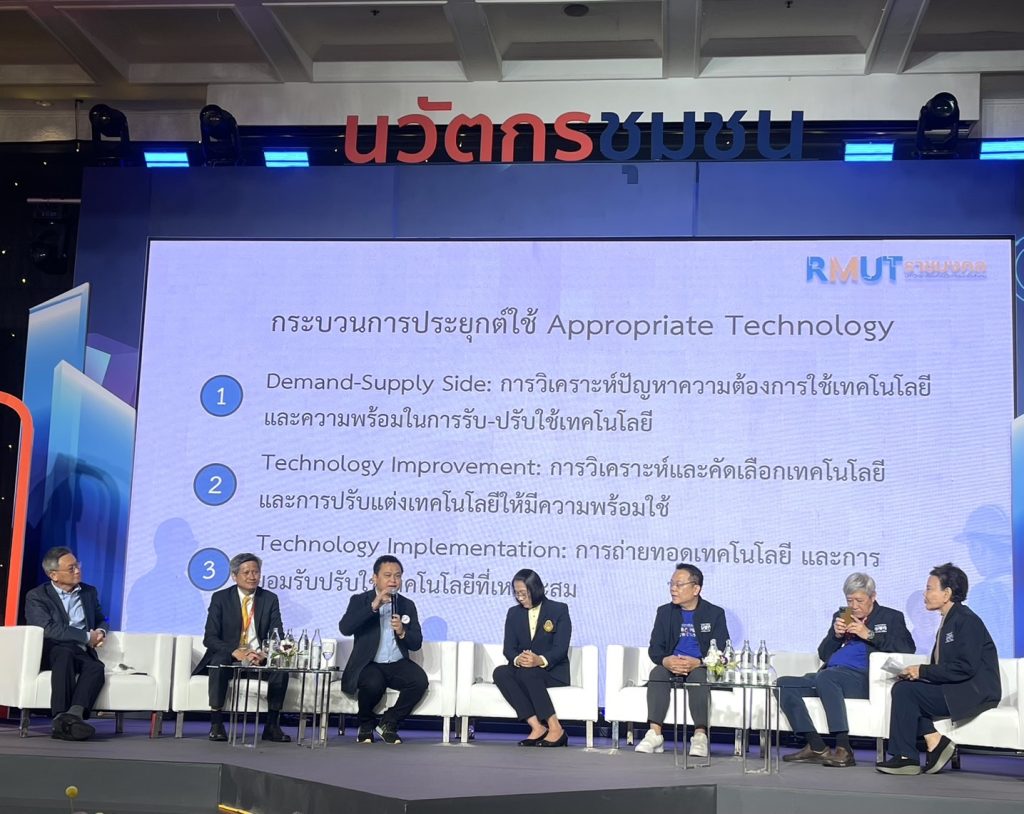 วันพุธที่ 2 กรกฎาคม 2568 รศ.ดร.บัณฑิต กฤตาคม รองอธิการบดีฝ่ายวิจัยพัฒนานวัตกรรม และบริการวิชาการ ร่วมเวทีเสวนาในหัวข้อ“สานพลังขับเคลื่อนเศรษฐกิจชุมชนไทย ด้วยเทคโนโลยีที่เหมาะสม” ภายในงาน “นวัตกรชุมชน :เทคโนโลยีที่เหมาะสมขับเคลื่อนเศรษฐกิจชุมชนไทย” ซึ่งจัดขึ้นระหว่างวันที่ 1 – 2