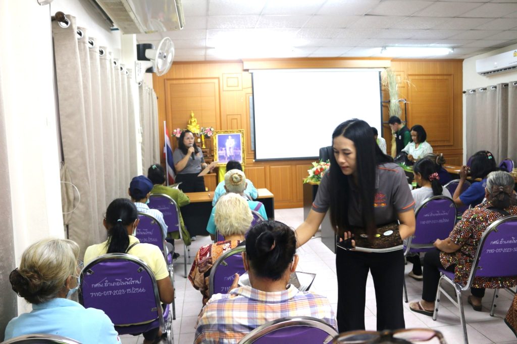 - ดร.ธีรวัฒน์ ตรีฤกษ์ฤทธิ์ เจ้าของกิจการสวนณัฐธีการเกษตร บรรยายเรื่อง “การแปรรูปจากหญ้าแฝกและการตลาด”
