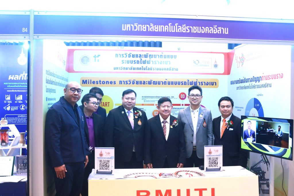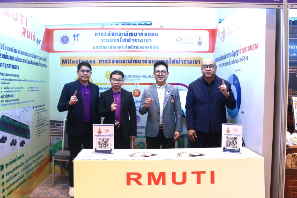 ภายในงาน มหาวิทยาลัยเทคโนโลยีราชมงคลอีสานได้นำเสนอผลงานวิจัยต้นแบบ “ระบบรถไฟฟ้ารางเบาโดยใช้ชิ้นส่วนที่ผลิตภายในประเทศไทย” ซึ่งมุ่งเน้นการต่อยอดสู่การผลิตในภาคอุตสาหกรรม พร้อมจัดแสดงนิทรรศการผลงานวิจัย สิ่งประดิษฐ์ และนวัตกรรมของอาจารย์และนักศึกษา เพื่อเผยแพร่สู่สาธารณชนทั้งในและต่างประเทศ ตอกย้ำบทบาทของมหาวิทยาลัยในการขับเคลื่อนสังคมด้วยองค์ความรู้และนวัตกรรม