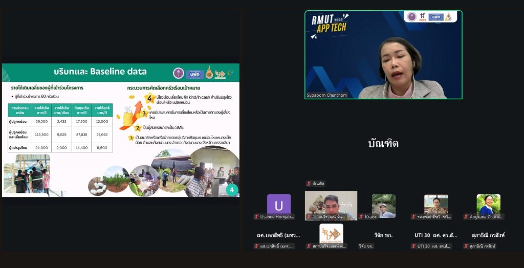 วันอังคารที่ 14 ตุลาคม 2568 รศ.ดร.บัณฑิต กฤตาคม รองอธิการบดีฝ่ายวิจัย พัฒนานวัตกรรม และบริการวิชาการ เป็นประธานการประชุมนักวิจัยเตรียมความพร้อมงานมหกรรม “เศรษฐกิจฐานราก: แก้จน ลดหนี้ เพิ่มรายได้ ด้วยเทคโนโลยีที่เหมาะสม” ผ่านสื่ออิเล็กทรอนิกส์ (Zoom Meeting) โดยมี ผศ.จิรวัฒน์ จันทร์สว่าง รองผู้อำนวยการฝ่ายบริการวิชาการ สถาบันวิจัยและพัฒนา เข้าร่วม พร้อมด้วยบุคลากรจากสถาบันวิจัยและพัฒนา และคณะนักวิจัยจากมหาวิทยาลัยเทคโนโลยีราชมงคลอีสาน